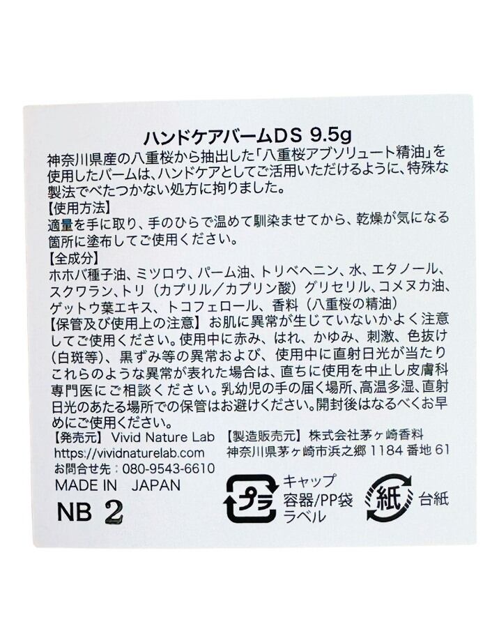神奈川県産の八重桜から抽出した「八重桜アブソリュート精油」を使用したバームは、ハンドケアとしてご活用いただけるように、特殊な製法でべたつかない処方に拘りました。